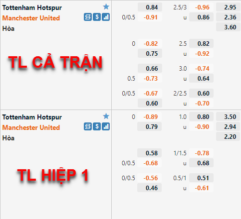 Đang trong tình cảnh bất ổn nhưng MU lại tăng giá khi kèo chấp đồng banh của họ chứng kiến lợi nhuận dần về mức ăn đủ. Trong bối cảnh tài xỉu giảm từ 2 3/4 về 2 1/2 thì dịch chuyển handicap như vậy là khả quan với đội khách.