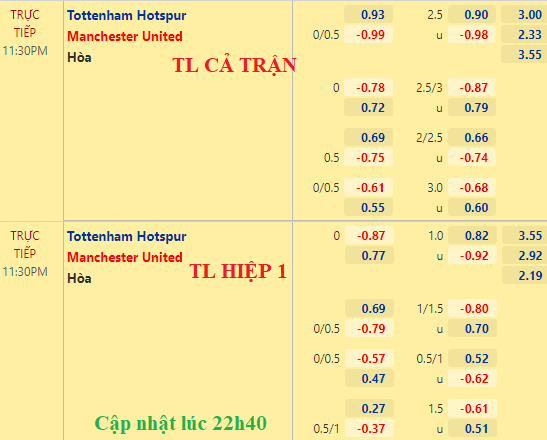 AEGoal chốt kèo bóng đá trực tiếp trận Tottenham vs Man Utd diễn ra lúc 23h30 ngày 30/10 trong khuôn khổ giải Ngoại hạng Anh sau khi dựa trên tính toán, chuyển động về kèo châu Á và đội hình ra sân của 2 đội.