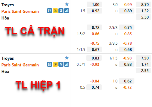Ở kèo tổng bàn thắng, trong hoàn cảnh mà Troyes đang tung ra đội hình lùi sâu, còn PSG vẫn thiếu nhiều cầu thủ tấn công quan trọng, mức kèo 3 hoà là không hề nhỏ, vì vậy vẫn có hy vọng cho kịch bản bùng nổ của trận đấu.
