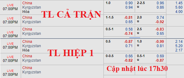 CHỐT KÈO TRỰC TIẾP trận Trung Quốc vs Kyrgyzstan (18h00): Niềm tin cửa dưới!