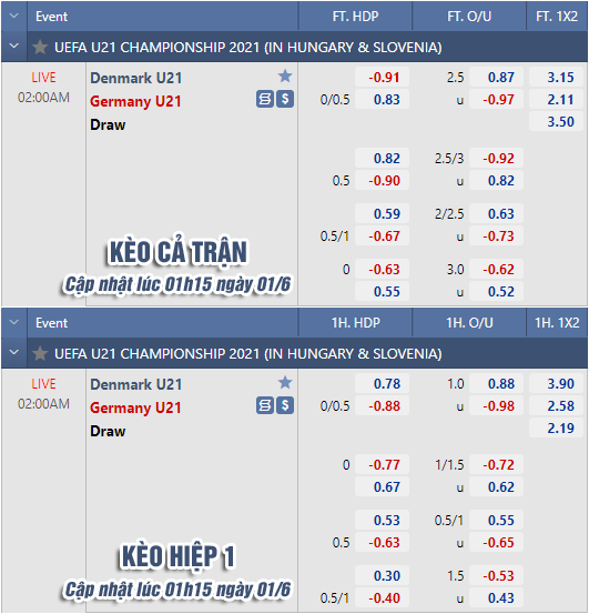 * Chốt kèo trận U21 Đan Mạch vs U21 Đức (02h00)