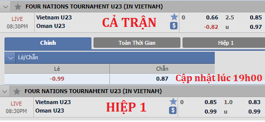 Chốt kèo trận U23 Việt Nam vs U23 Oman (19h30)