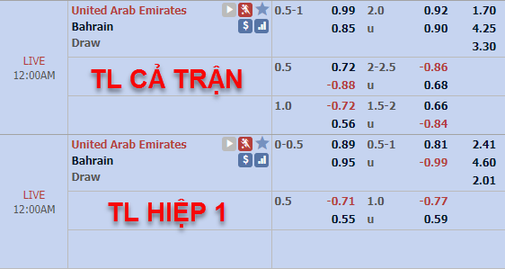 Tỷ lệ chấp của đội chủ nhà UAE trong trận đấu khai mạc vẫn được nhà cái châu Á giữ ở mức 3/4 như thời điểm chúng tôi cập nhật sáng nay nhưng điểm ăn của cửa trên đã có biến động tăng đáng kể. Trong khi đó kèo tổng bàn thắng cả trận vẫn giữ ở mức 2 hòa và gần như không thay kể từ sáng nay.