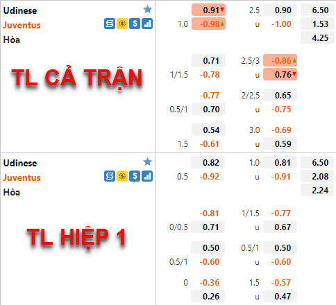 AEGoal chốt kèo bóng đá trực tiếp trận Udinese vs Juventus diễn ra lúc 23h30 ngày 22/8 trong khuôn khổ giải VĐQG Italia sau khi dựa trên tính toán, chuyển động về kèo châu Á và đội hình ra sân của 2 đội.
