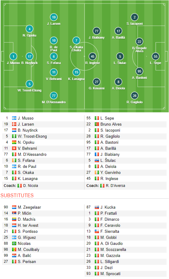+ Udinese vs Parma (Vòng 20 giải VĐQG Italia, Serie A)