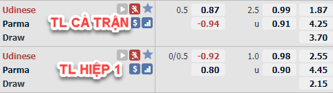 AEGoal.net chốt kèo bóng đá trực tiếp trận Udinese vs Parma diễn ra lúc 23h00 ngày 18/10 trong khuôn khổ giải VĐQG Italia sau khi dựa trên tính toán, chuyển động về kèo châu Á và đội hình ra sân của 2 đội.
