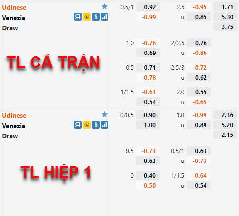 Udinese không có sự phục vụ của Deulofeu ở đội hình xuất phát nhưng vẫn giữ được sự ổn định trên sàn giao dịch châu Á. Kèo chấp 3/4 với lợi điểm thấp hơn so với chiều ngược lại vẫn được duy trì đến thời điểm bóng chuẩn bị lăn.