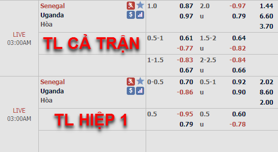 Kèo châu Á cả trận không có nhiều biến động đáng chú ý trên sàn châu Á. Tỷ lệ chính Senegal chấp 1 hòa vẫn được duy trì cùng lợi điểm cân bằng hơn giữa các lựa chọn đối lập.