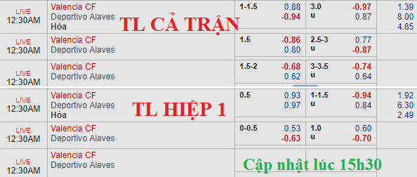CHỐT KÈO TRỰC TIẾP trận Valencia vs Alaves (23h30)