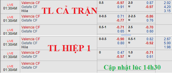 AEGoal.net chốt kèo trực tiếp trận Valencia vs Getafe diễn ra lúc 00h30 ngày 18/3 sau khi dựa trên tính toán, chuyển động về kèo châu Á và đội hình ra sân của 2 đội.