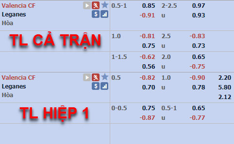 Cùng đà lao dốc của đội cửa trên, tổng bàn thắng cũng giảm nhẹ với chỉ số 2 1/4. Khả năng ghi bàn của Valencia rõ ràng bị nghi ngờ, trong khi Leganes cũng khó chơi hứng khởi tại Mestalla. Do đó, giới phân tích đánh giá đây nhiều khả năng là trận cầu khan hiếm bàn thắng bởi thực tế bầy Dơi vẫn đang thể hiện phong độ khá nghèo nàn tại La Liga.