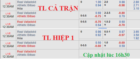 CHỐT KÈO TRỰC TIẾP trận Valladolid vs Bilbao (23h30)