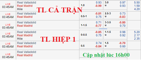Với Valladolid, họ cũng rất cần điểm trong cuộc chiến trụ hạng bởi hiện tại mới chỉ hơn nhóm nguy hiểm có 3 điểm ít ỏi. Động lực, lợi thế sân nhà và sự thoải mái tâm lý sẽ giúp cho Valladolid có thể làm nên điều bất ngờ tiếp theo trước Real Madrid. Kèo được chấp 1 hầu như không có nhiều thay đổi cho thấy cửa dưới tương đối đáng tin. Kèo xỉu 3 cũng tương đối sáng sủa.