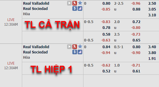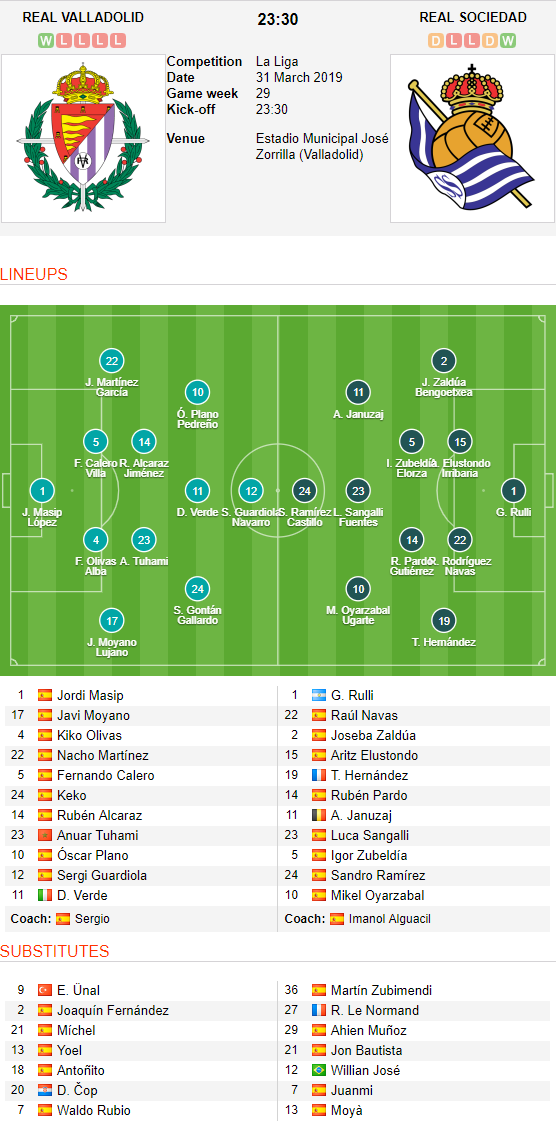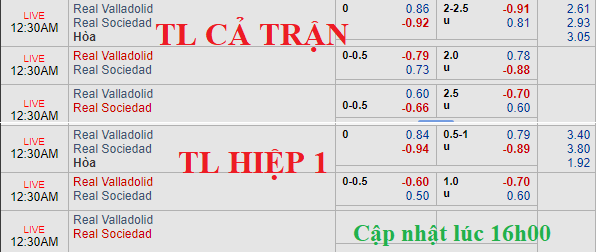 CHỐT KÈO TRỰC TIẾP trận Valladolid vs Sociedad (23h30)