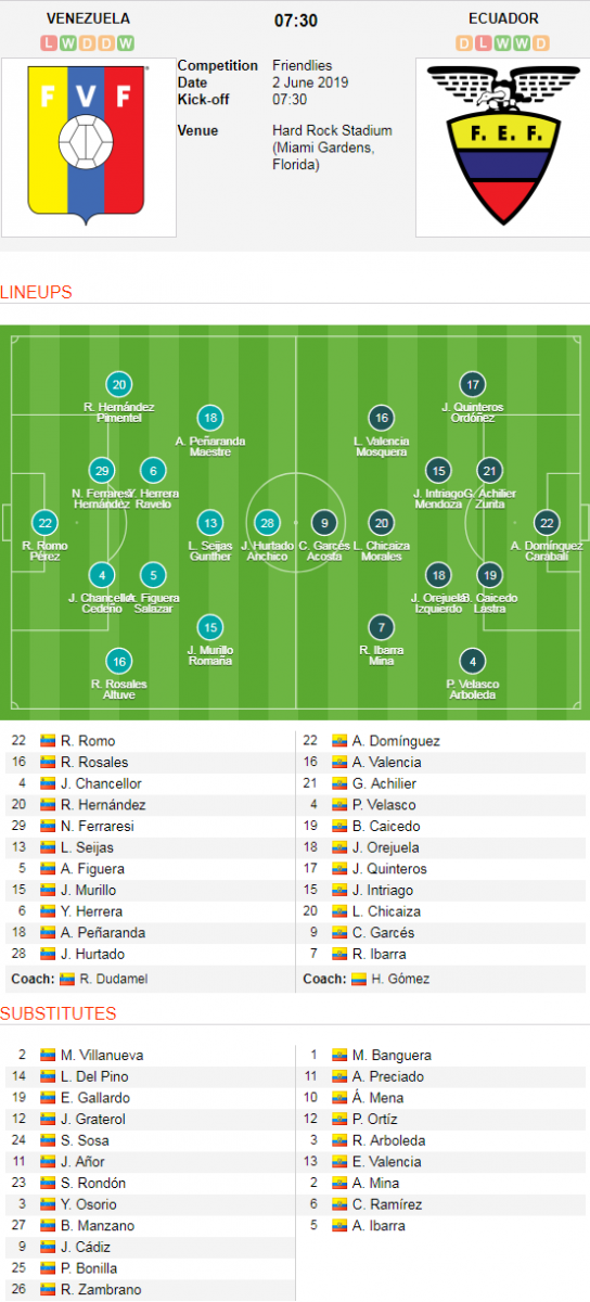 + Trận đấu : Venezuela vs Ecuador (Giao hữu quốc tế)
