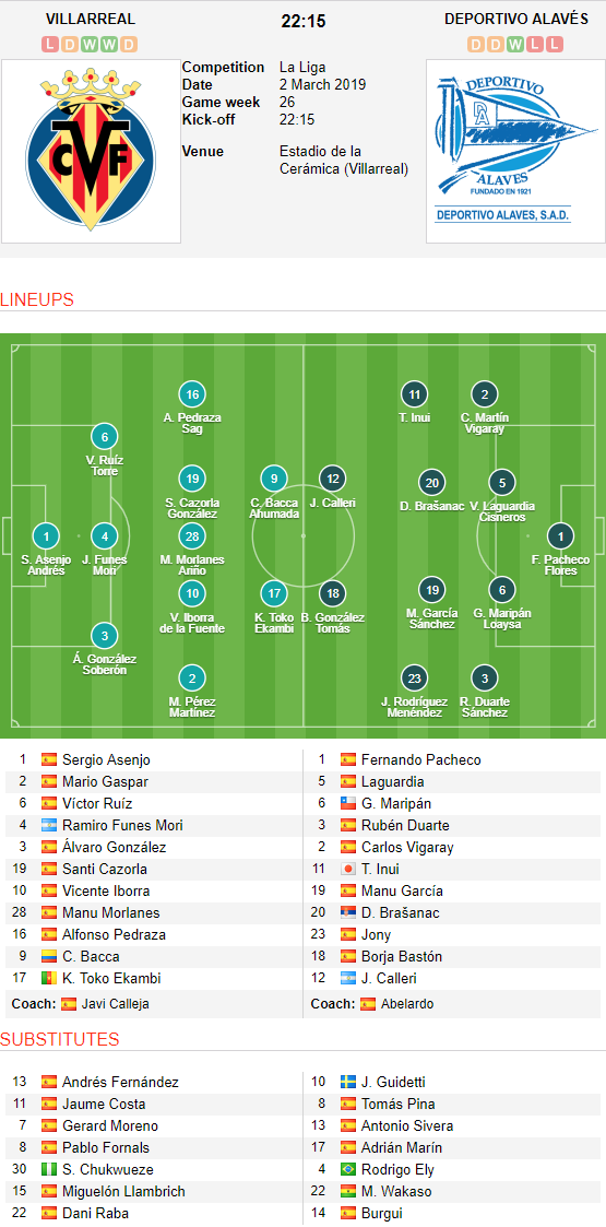 + Villarreal vs Alaves (Vòng 26 giải VĐQG Tây Ban Nha, La Liga)