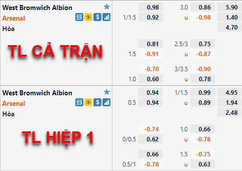 AEGoal chốt kèo bóng đá trực tiếp trận West Brom vs Arsenal diễn ra lúc 02h00 ngày 26/8 trong khuôn khổ cúp Liên Đoàn Anh sau khi dựa trên tính toán, chuyển động về kèo châu Á và đội hình ra sân của 2 đội.