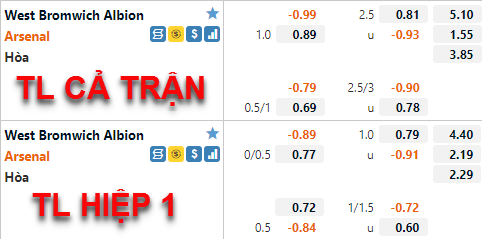 Arsenal -1 1/4 cả trận