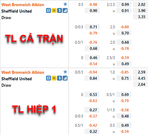 Tỷ lệ chấp của West Brom vẫn được nhà cái châu Á giữ ở mức 1/2 nhưng điểm ăn đang được điều chỉnh theo hướng có lợi cho lựa chọn cửa trên. Tương tự bên phía tỷ lệ tài xỉu của trận đấu không có biến động lớn, mốc 2 1/4 vẫn là mốc chính của trận đấu, điểm ăn cửa tài đã được điều chỉnh tăng so với trước đây.