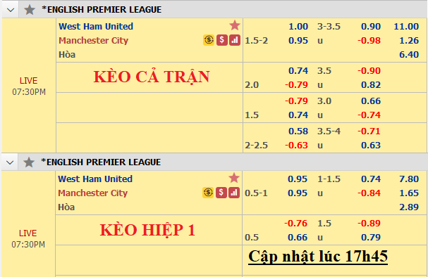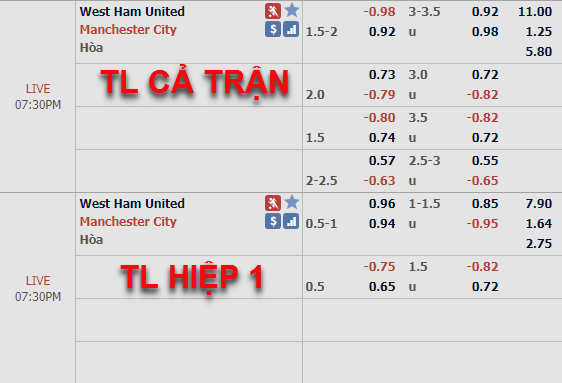 Mặc dù để tiền đạo Aguero trên băng ghế dự bị và Jesus lĩnh ấn tiên phong nhưng Man City vẫn giữ được sự ổn định trên sàn châu Á. Các nhà ĐKVĐ vẫn có lợi điểm thấp hơn so với chiều ngược lại ở kèo chính chấp 1 3/4. Trên thực tế, đây đã là tỷ lệ được điều chỉnh khi ban đầu xuất hiện trên sàn giao dịch chỉ chứng kiến Man City chấp 1 1/2.