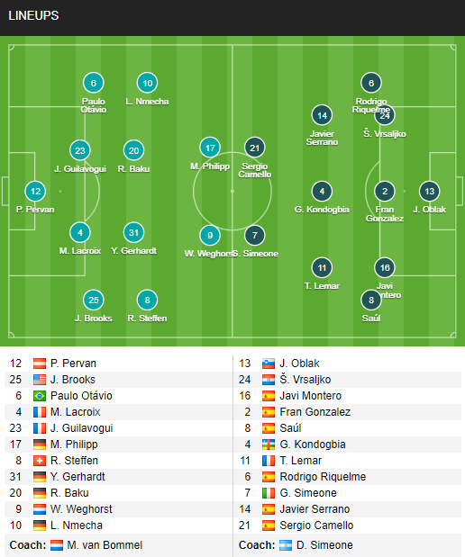 - Atletico Madrid: Oblak - Riquelme, Vrsaljko, Fran González, Montero, Saúl, Javi Serrano, Kondogbia, Lemar