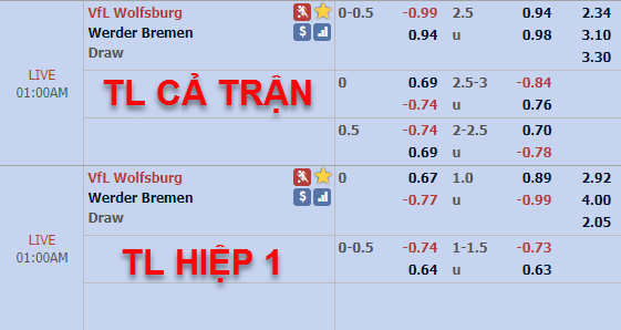 Tỷ lệ của trận đấu vẫn được nhà cái châu Á giữ ở mức chấp 1/4 của đội chủ nhà Wolfsburg như thời điểm chúng tôi cập nhật chiều nay nhưng mức điểm ăn đã có những điều chỉnh đáng kể, mức điểm bên phía Bremen đã giảm khá mạnh so với chiều nay. Đây là một dấu hiệu không tốt cho việc lựa chọn cửa trên trong trận này.