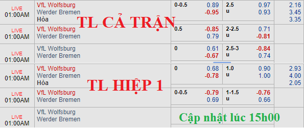 CHỐT KÈO TRỰC TIẾP trận Wolfsburg vs Bremen (00h00)