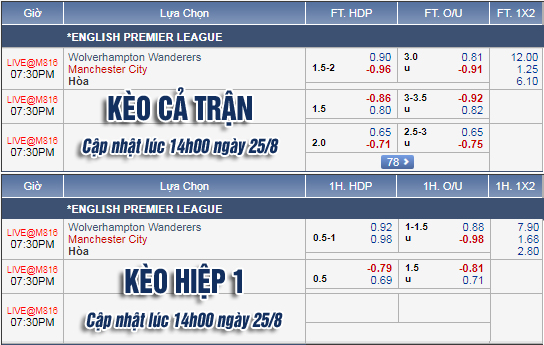 Trong khi đó, mức kèo tài xỉu 3 1/4 được đánh giá cao hơn ở cửa Xỉu. Hàng công của Man City tỏ ra quá mạnh mẽ và chất lượng, nhưng kèo tài xỉu lại chỉ ở mức 1 3/4. Hơn nữa, Wolves với thế cửa dưới sẽ cần chơi chắc chắn và hạn chế cho đối phương tiếp cận khung thành của mình.