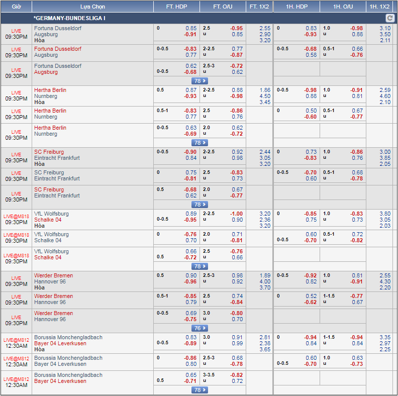 Bremen vẫn giữ được tỷ lệ chấp 3/4 so với phiên giao dịch sáng nay trong khi mức tài xỉu vẫn là 2 3/4 nhưng điểm ăn có giảm nhẹ. Với tỷ lệ như hiện tại thì nên đặt niềm tin vào cửa tài khi mà hàng công của cả 2 đội đang chơi rất hiệu quả.