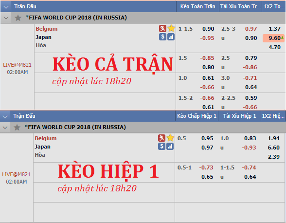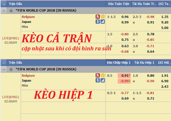 Liên tục cập nhật và tư vấn kèo châu Á trận Bỉ vs Nhật Bản trong khuôn khổ vòng 1/8 World Cup 2018.