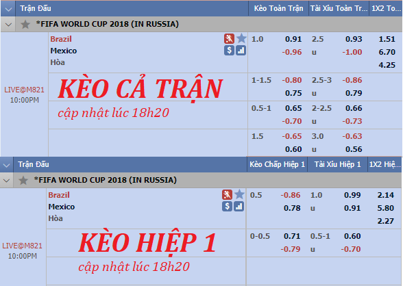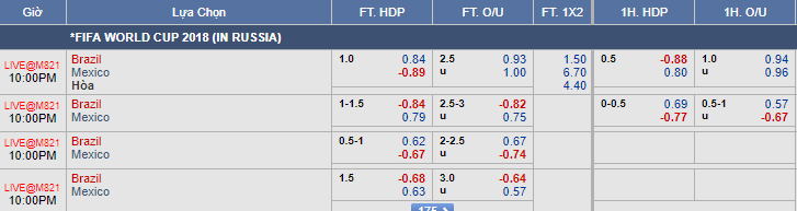 Liên tục cập nhật và tư vấn kèo châu Á trận Brazil vs Mexico trong khuôn khổ vòng 1/8 World Cup 2018.
