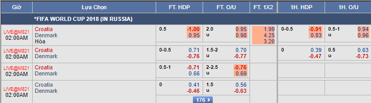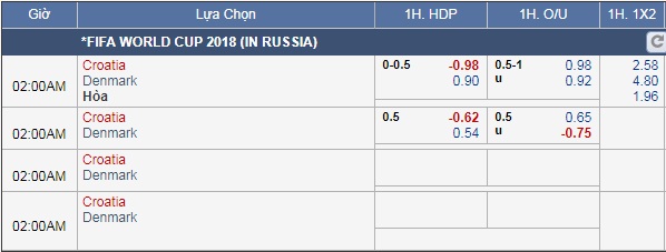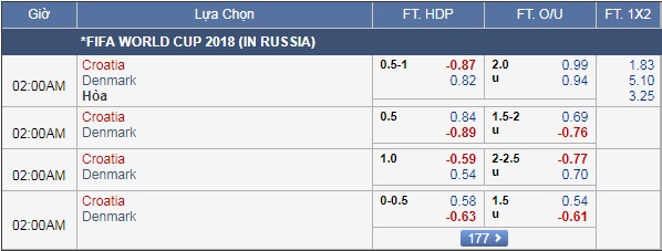 Liên tục cập nhật và tư vấn kèo châu Á trận Croatia vs Đan Mạch trong khuôn khổ vòng 1/8 World Cup 2018.