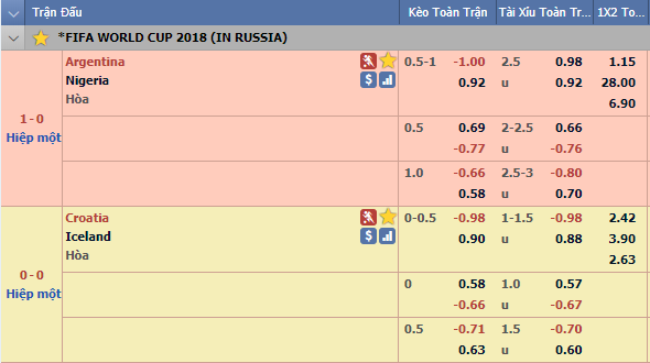 - Nigeria thua Argentina. Lúc này Argentina và Iceland cùng được 4 điểm và hai đội cũng sẽ so kè chỉ số phụ để xác định tấm vé thứ hai vào vòng 1/8.