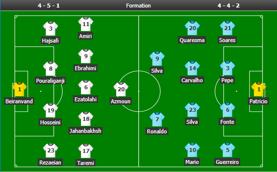 Iran (4-1-4-1): Beiranvand; Haji Safi, Ezatolahi, Pouraliganji, Ebrahimi, Ansarifard, Amiri, Taremi, Hosseini, Azmoun, Rezaeian