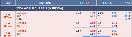 Phải nhờ khoảnh khắc lóe sáng của Quaresma thì Bồ Đào Nha mới xuyên thủng mành lưới Iran. Dù cầm bóng nhiều hơn nhưng Bồ Đào Nha không tạo ra nhiều cơ hội rõ rệt. Iran cho thấy họ là đối thủ vô cùng khó chịu. Với thế trận hiện tại thì nên tiếp tục tin vào Iran trong hiệp 2.