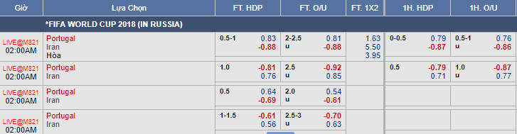 Liên tục cập nhật và tư vấn kèo châu Á trận Iran vs Bồ Đào Nha trong khuôn khổ World Cup 2018.