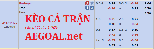 Chốt kèo trực tiếp trận Iran vs Bồ Đào Nha (01h00):