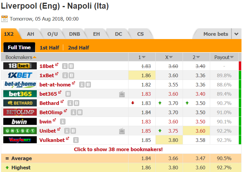 Liên tục cập nhật và tư vấn kèo châu Á trận Liverpool vs Napoli trong khuôn khổ giao hữu hè 2018.