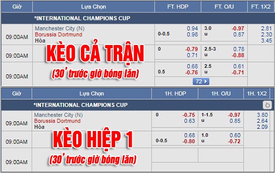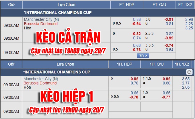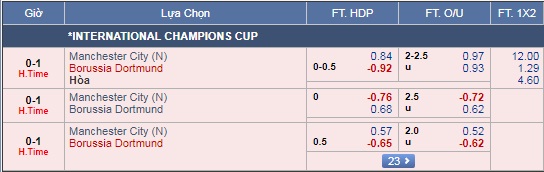Liên tục cập nhật và tư vấn kèo châu Á trận Man City vs Dortmund trong khuôn khổ ICC 2018.