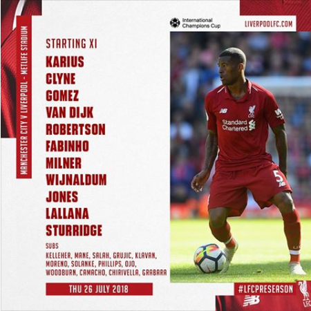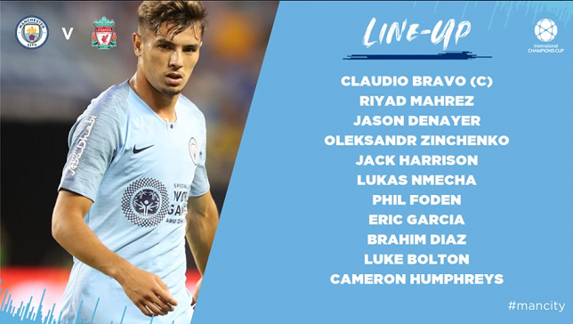 Mặc dù mang sang Mỹ đội hình thiếu nhiều ngôi sao chủ chốt nhưng HLV Pep Guardiola cho thấy việc ông chỉ coi ICC là giải thử nghiệm khi tiếp tục cất Leroy Sane trên băng ghế dự bị ở trận này. Trong khi đó bên phía Liverpool, Salah và Mane cũng ngồi ngoài nhưng với những cái tên như Van Dijk, Robertson, Fabinho, Lallana và Sturridge thì Lữ đoàn đỏ vẫn được đánh giá nhỉnh hơn so với The Citizens.