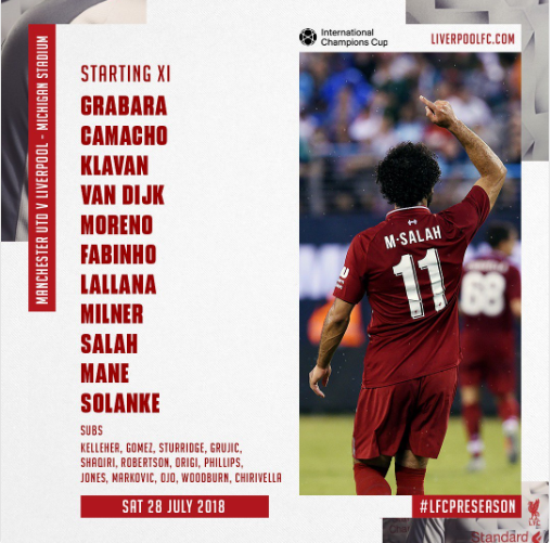 Liverpool (4-3-3): Karius; Klavan, Van Dijk, Robertson, Clyne; Fabinho, Lallana, Jones; Salah, Mane, Origi.