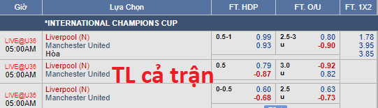 So với phiên khớp lệnh đầu giờ chiều ngày 28/7, điểm ăn cho cửa trên của Liverpool liên tục xuống thấp và sau khi 2 đội công bố đội hình ra sân, định mức chấp hòa của The Kop được kéo lên thành 3/4. Trong khi đó, mốc tài xỉu cũng được nhích lên mức 3 hòa so với 2 3/4 chiều ngày 28/7.