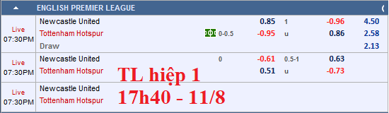 Liên tục cập nhật và tư vấn kèo châu Á trận Newcastle vs Tottenham trong khuôn khổ vòng 1 giải Ngoại hạng Anh.