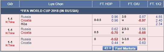 * Chốt kèo trận Nga vs Croatia (01h00)