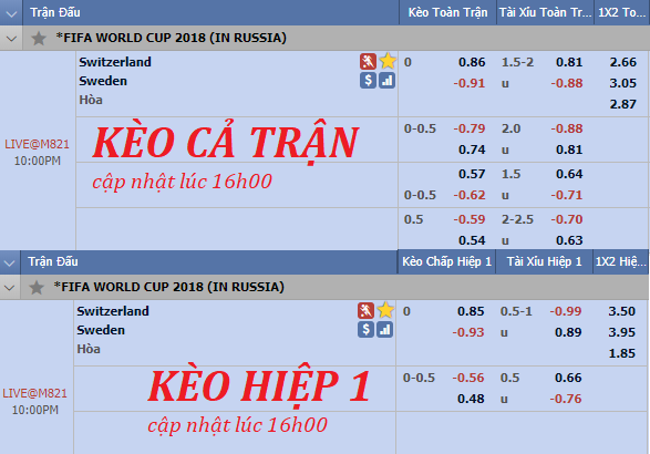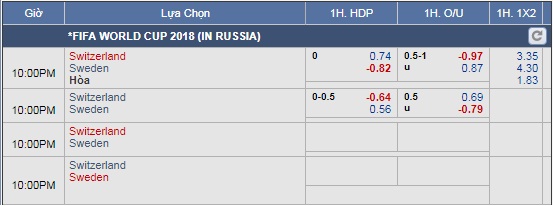Liên tục cập nhật và tư vấn kèo châu Á trận Thụy Điển vs Thụy Sỹ trong khuôn khổ vòng 1/8 World Cup 2018.