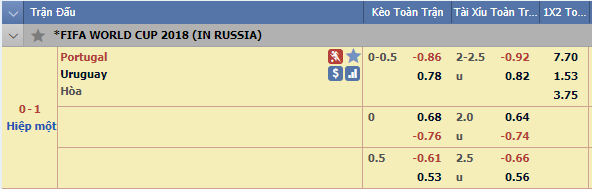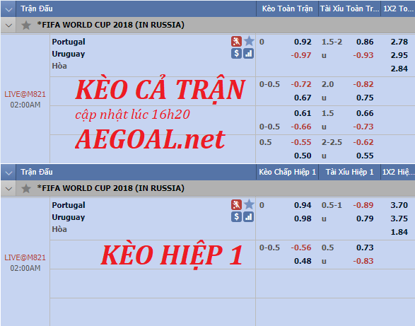 Liên tục cập nhật và tư vấn kèo châu Á trận Uruguay vs Bồ Đào Nha trong khuôn khổ vòng 1/8 World Cup 2018.