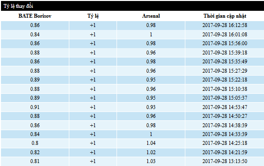 Tình trạng này kéo dài qua từng giờ khớp lệnh đã khiến Arsenal giảm điểm rõ rệt khi tỷ lệ ban đầu chấp 1 1/4 của họ đã bị điều chỉnh xuống kèo chính chấp 1 hòa vào cuối phiên. Thậm chí Pháo thủ vẫn tiếp tục có xu hướng bị đẩy xuống kèo chấp 3/4 khi lượng nhà đầu tư tin vào cửa dưới ngày một tăng cao hiện nay.