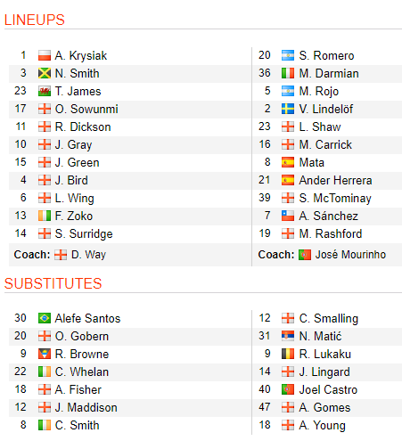 Mourinho tung vào sân đội hình khá mạnh khi tân binh Alexis Sanchez sát cánh trên hàng công cùng Rashford và Mata. Ngoài ra thì những cái tên khác của MU cũng khá chất lượng như Carrick, Ander Herrera, Lindelof...