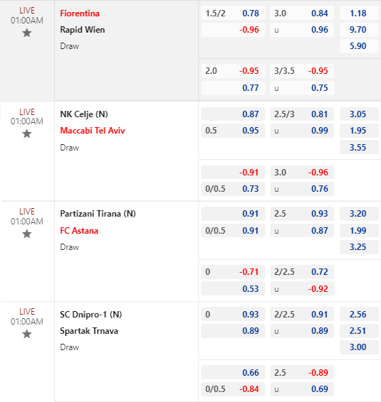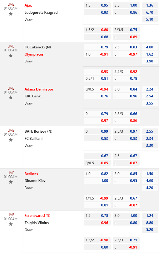 Chốt kèo trực tiếp loạt trận 01h00: