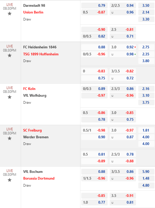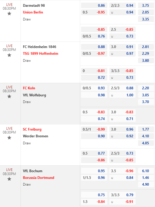 Chốt kèo trực tiếp giải VĐQG Đức loạt 20h30: